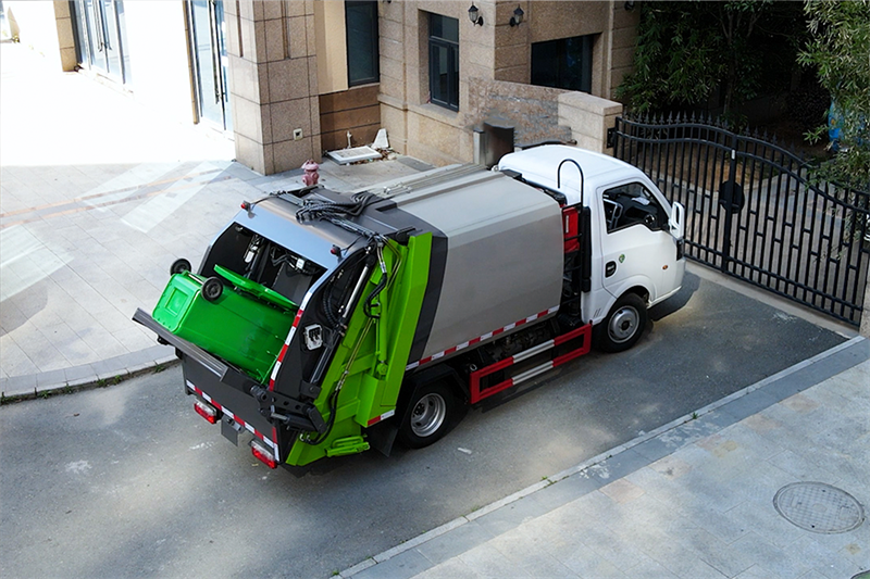 尾部翻轉板(可掛載120L和240L塑料垃圾桶),電控為CAN總線集成電路形式,手電一體,無線遙控操作!