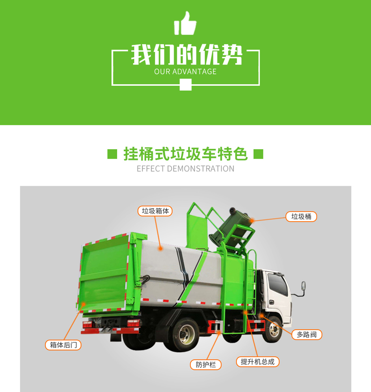 (1)收集方式簡便:一改城市滿街擺放垃圾筒的臟亂舊貌,杜絕二次污染。
