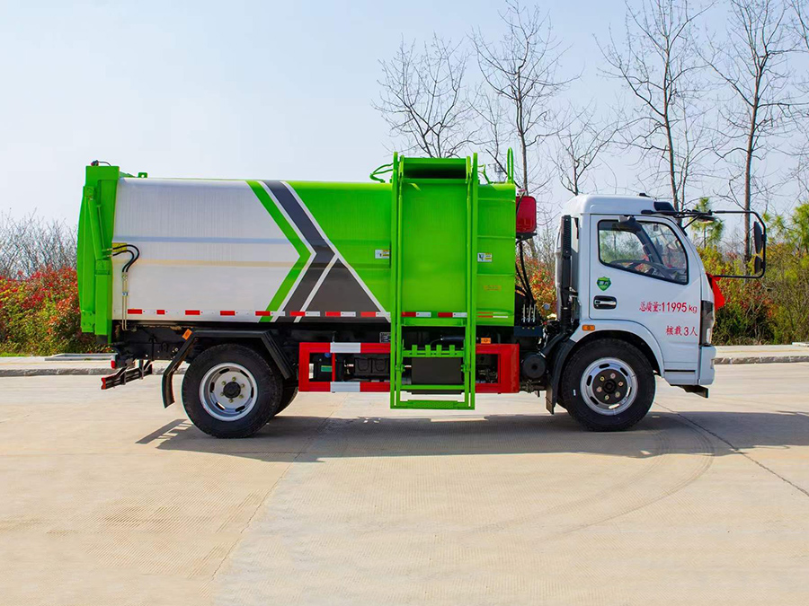 箱體有效容積約11立方米,采用邊三底四Q345錳板,弧形耐壓箱體,側裝拉桿式提升機構,可提升120L/240L垃圾桶,帶全推裝置,后門液壓鎖緊,整體密封效果好,尾部帶污水箱排污口,采用威森博樂全套液壓系統,帶電控制系統,手動室外操作。