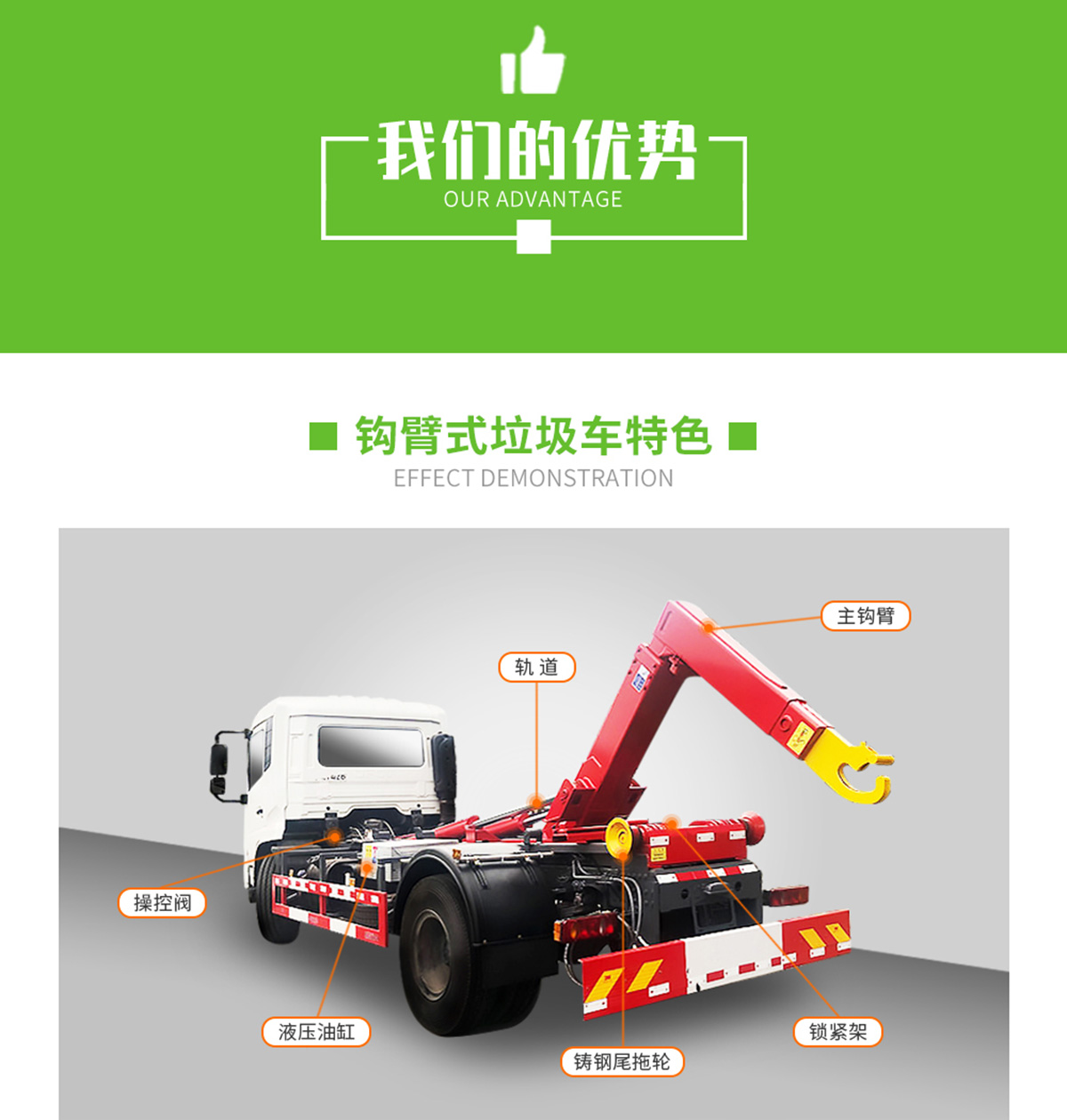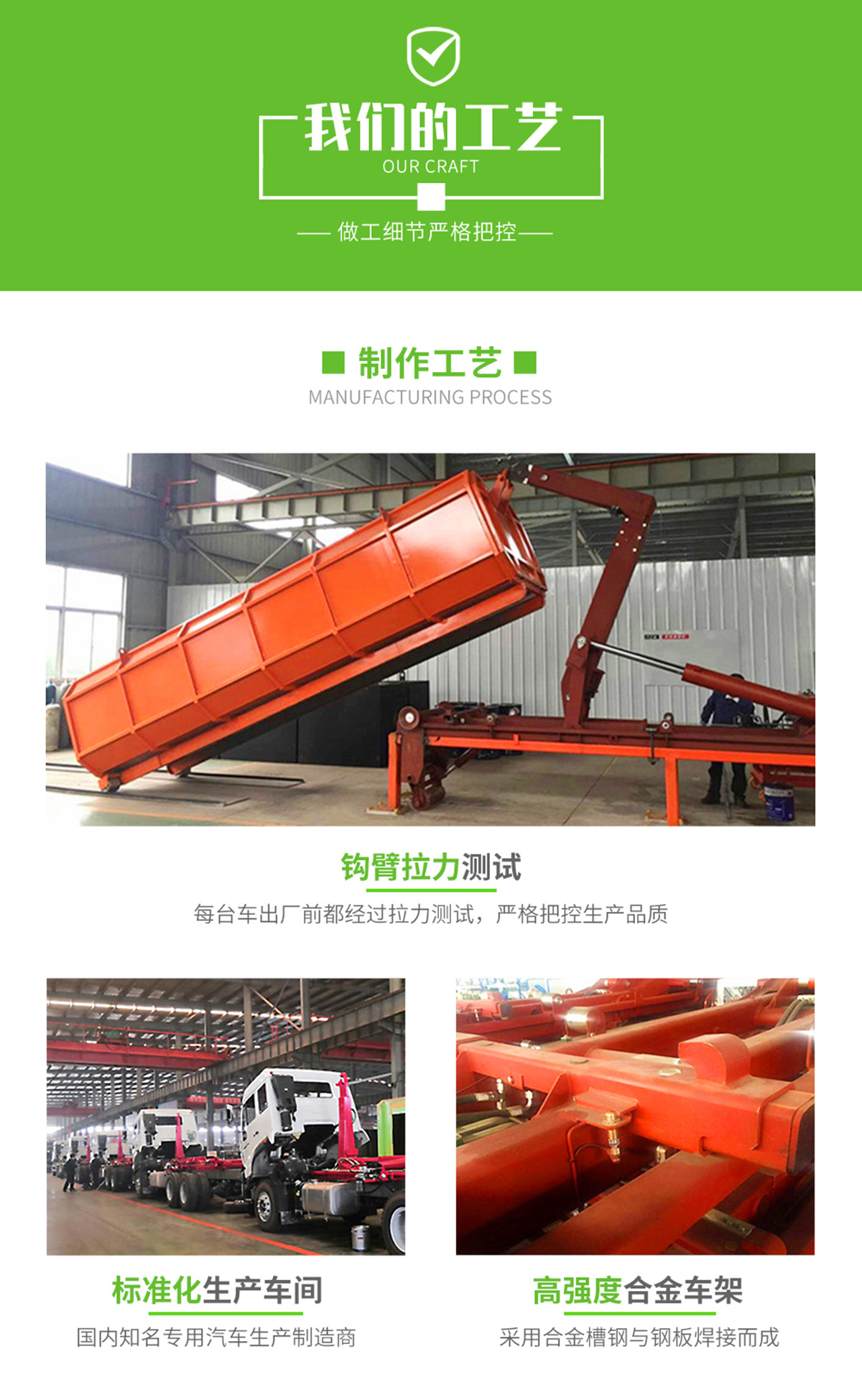底盤配置:柳機113馬力,1650單排駕駛室,5檔變速箱,175R14真空輪胎【后雙輪】,前后橋1.5/2.5。標配動力轉向,前盤制動,中控門鎖,電動門窗,定速巡航,藍牙電話,LED日間行車燈,空調,預留取力器窗口。 上裝配置:勾臂垃圾車標配:由液壓系統、操作系統、拉臂,組成。舉升油制缸為國內知名液壓件廠家生產的雙作用油缸,多路閥液壓控制,操作員手動控制垃圾廂吊上放下,帶自卸功能,上下一次工作循環(huán)時間≤40秒。垃圾箱冷板壓制垃圾箱,帶后門密封圈,帶金屬滾動輪。 |