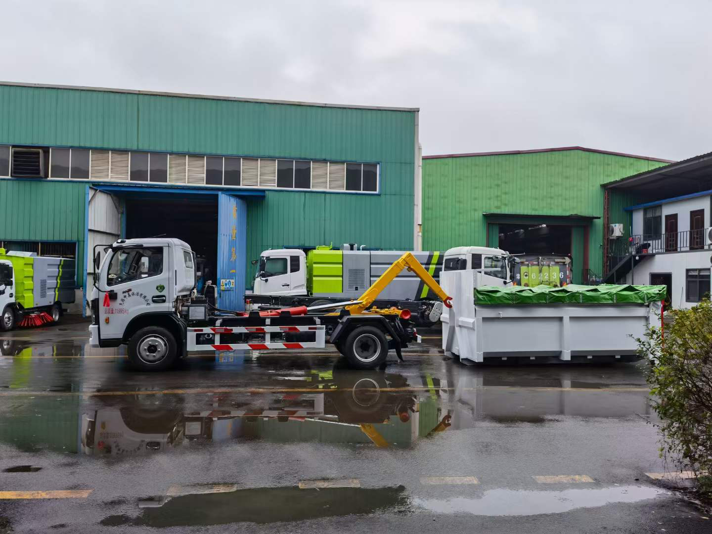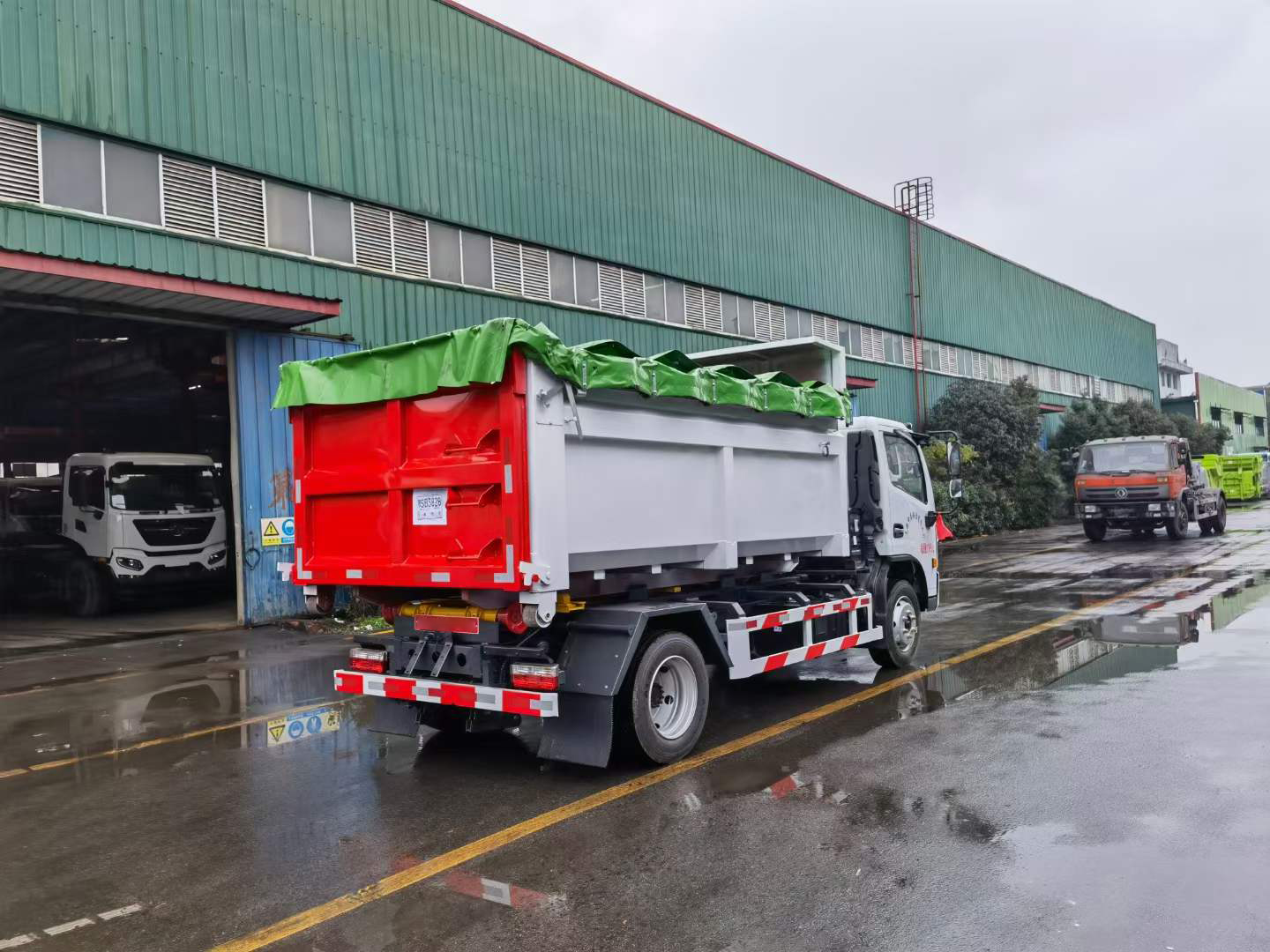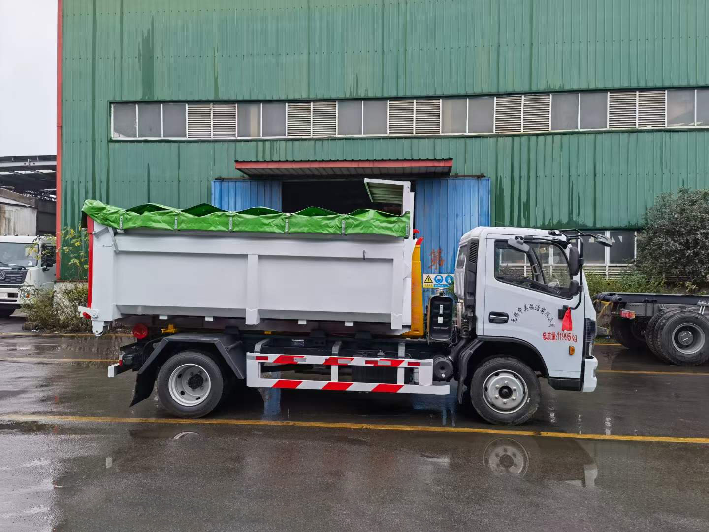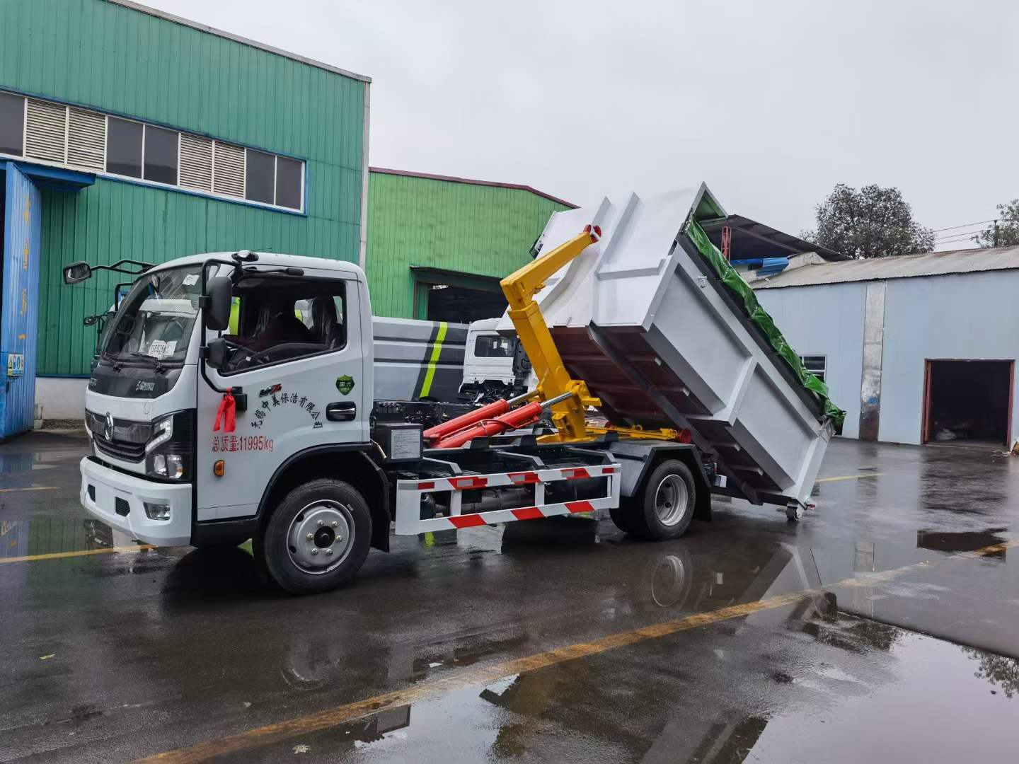 伸縮套臂:上裝部分由伸縮拉臂、主臂油缸、活動套臂、套臂油缸、附車架、翻轉(zhuǎn)架、支撐腿、鎖緊架、鎖緊油缸及多路換向閥等組成。拉臂帶伸縮功能,可以通過改變力矩和加大壓力的方式拉升更大的重量,配備垃圾斗后適合裝載建筑垃圾等重物,液壓泵為合肥皖液、多路閥、液壓鎖、平衡閥、行程閥、采用威森博樂,油缸為定制頂尖合資威森博樂品牌。
